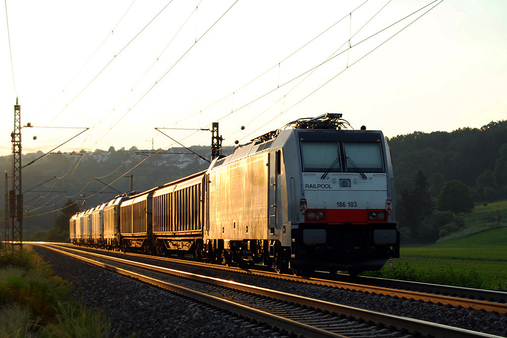 05.06.2017 Streckenabschnitt Uhingen ... einer 187 103 von Railpool als Anhängsel die Filsbahn von Ulm herunter.