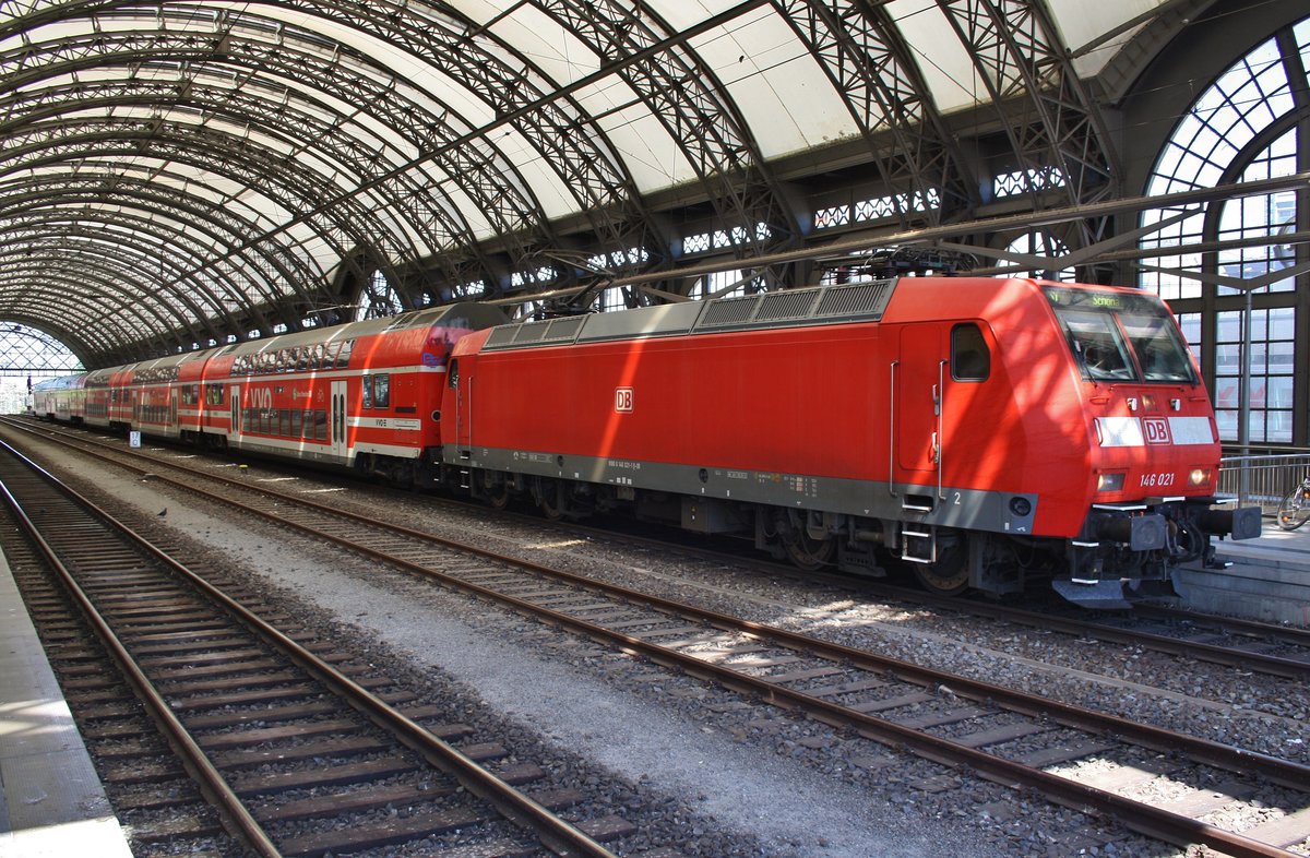 146 021 wartet am 27.5.2017 mit der S1 von Meißen Triebischtal nach Schöna im Dresdener Hauptbahnhof.