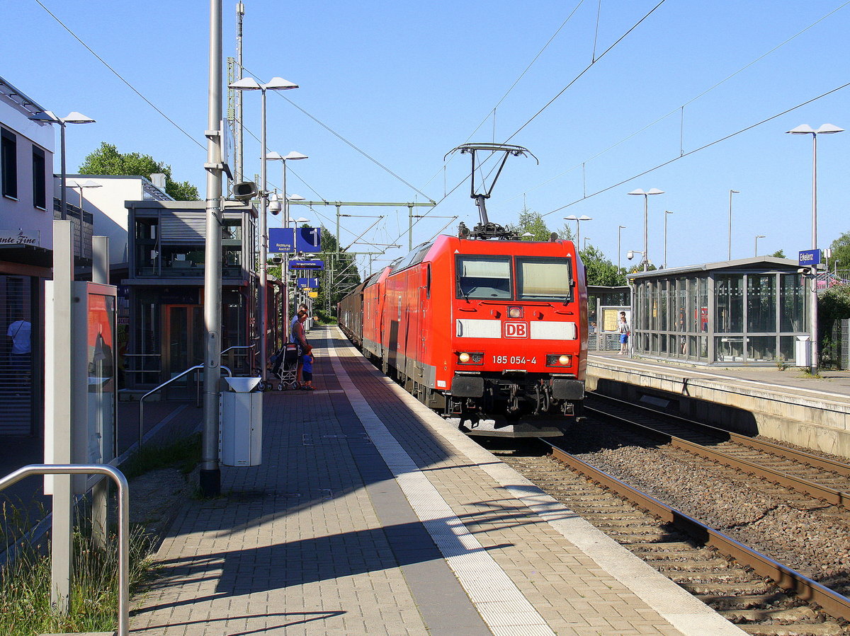 185 054-4 und eine 185er beide von DB kommen mit einem Audi-VW-Skoda-Zug aus Osnabrück nach Kortenberg-Goederen(B) und kommen aus Richtung Mönchengladbach-Hbf,Rheydt-Hbf,Wickrath,Beckrath,Herrath und fährt durch Erkelenz in Richtung Baal,Hückelhoven-Baal,Brachelen,Lindern,Süggerath,Geilenkirchen,Frelenberg,Zweibrüggen,Übach-Palenberg,Rimburg,Finkenrath,Hofstadt,Herzogenrath, Kohlscheid,Richterich,Laurensberg,Aachen-West. Aufgenommen vom Bahnsteig 1 in Erkelenz. Bei Sommerwetter am Nachmittag vom 26.5.2017.
