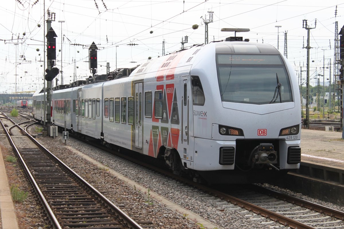 Am 05.06.2017 wird 429 120 als RE14 nach Mainz in Mannheim Hauptbahnhof auf Gleis 2 bereit gestellt.