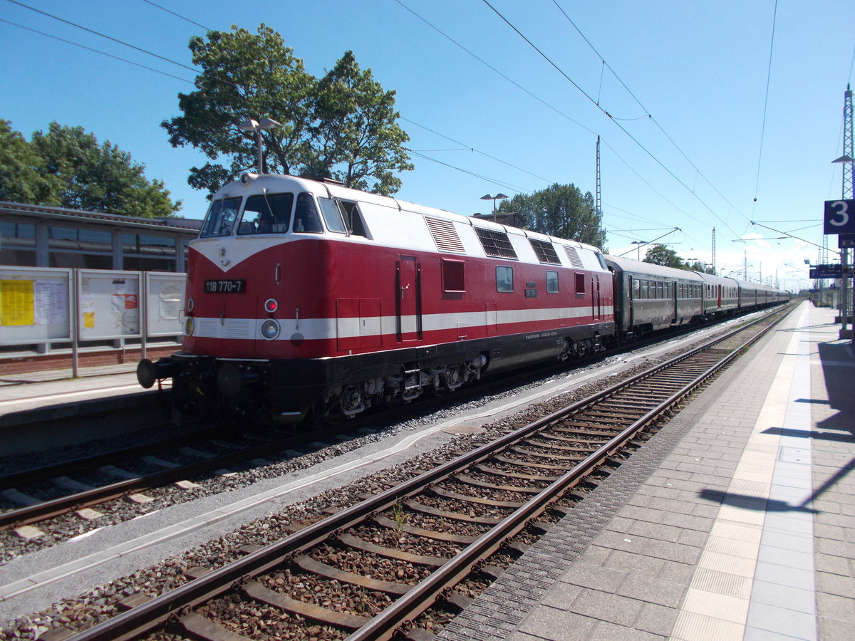 Wieder mußte die 118 770,als zweite Lok,am 10.Juni 2017,von Bergen/Rügen mit nach Putbus laufen.Hier ist der Leerpark in Bergen/Rügen kurz vor der Überfahrt nach Putbus.