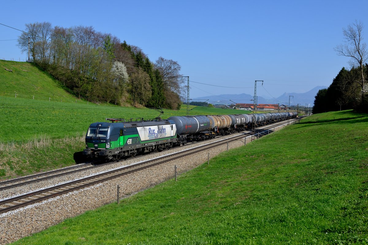 Am 09. April 2017 wurde der GC 47154, geführt von 185 232, ebenfalls über Freilassing umgeleitet. Bei Straß gelang die Aufnahme des Kesselwagenzuges.
