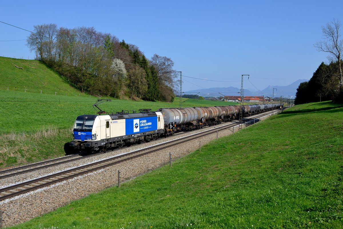 Für mich das Bild des Tages: Der frisch gewaschene Vectron 1193.980 der Wiener Lokalbahnen wurde mit seinem DGS 97641 nach Oberhausen über Freilassung umgeleitet und konnte bei Straß in frühlingshafter Landschaft fotografiert werden.