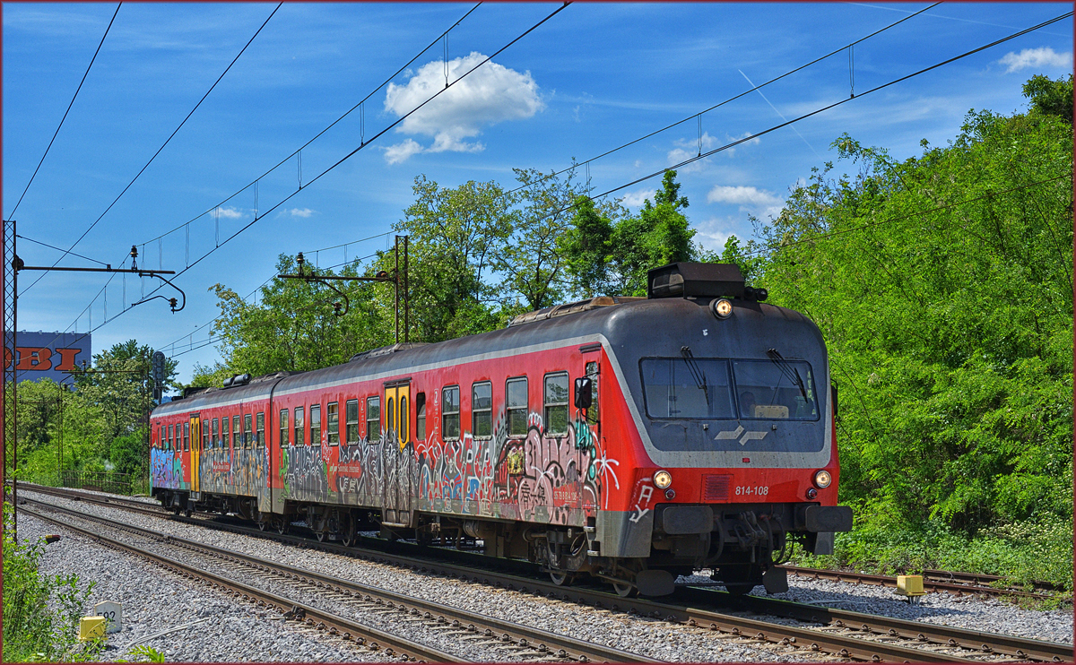 SŽ 814-108 fährt durch Maribor-Tabor Richtung Maribor HBF. /16.5.2017