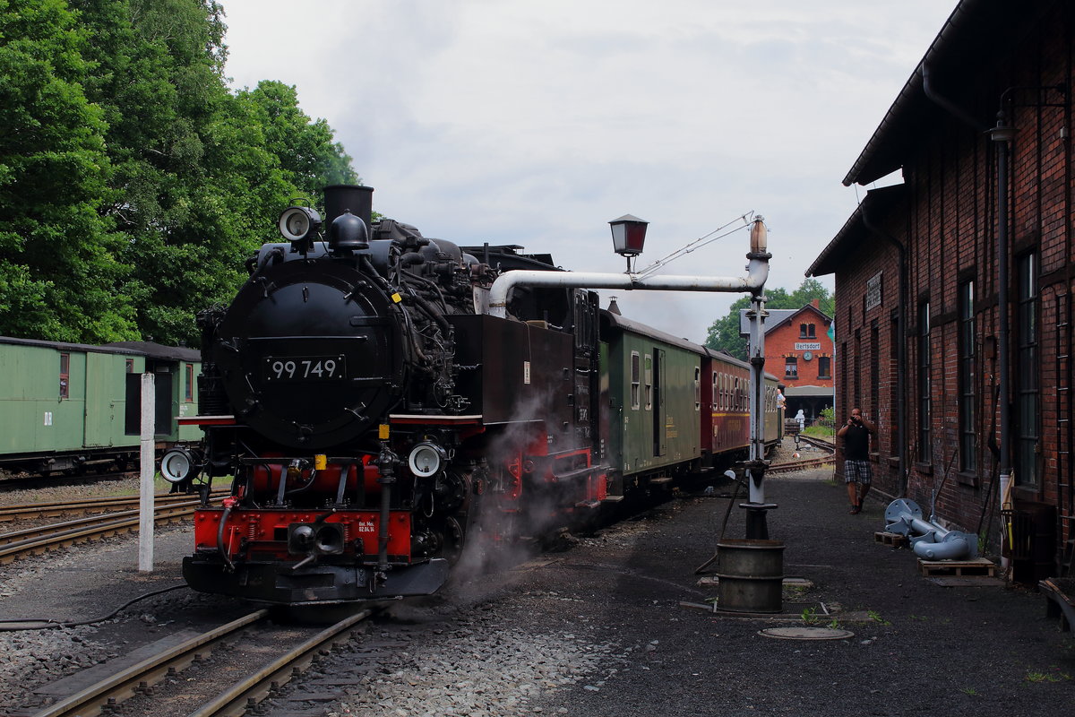 Wasserbefüllung in Bertsdorf bei der 99 749, danach ging es weiter zum Kurort Oybin. Aufgenommen am 03.06.2017