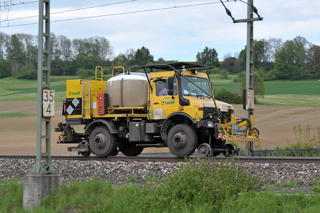14.05.2017 Streckenabschnitt Uhingen, Mercedes-Benz/Zweiweg 2-Wege-Unimog U1650L der Firma Lauff aus Köln-Lövenich zur Vegetationskontrolle
