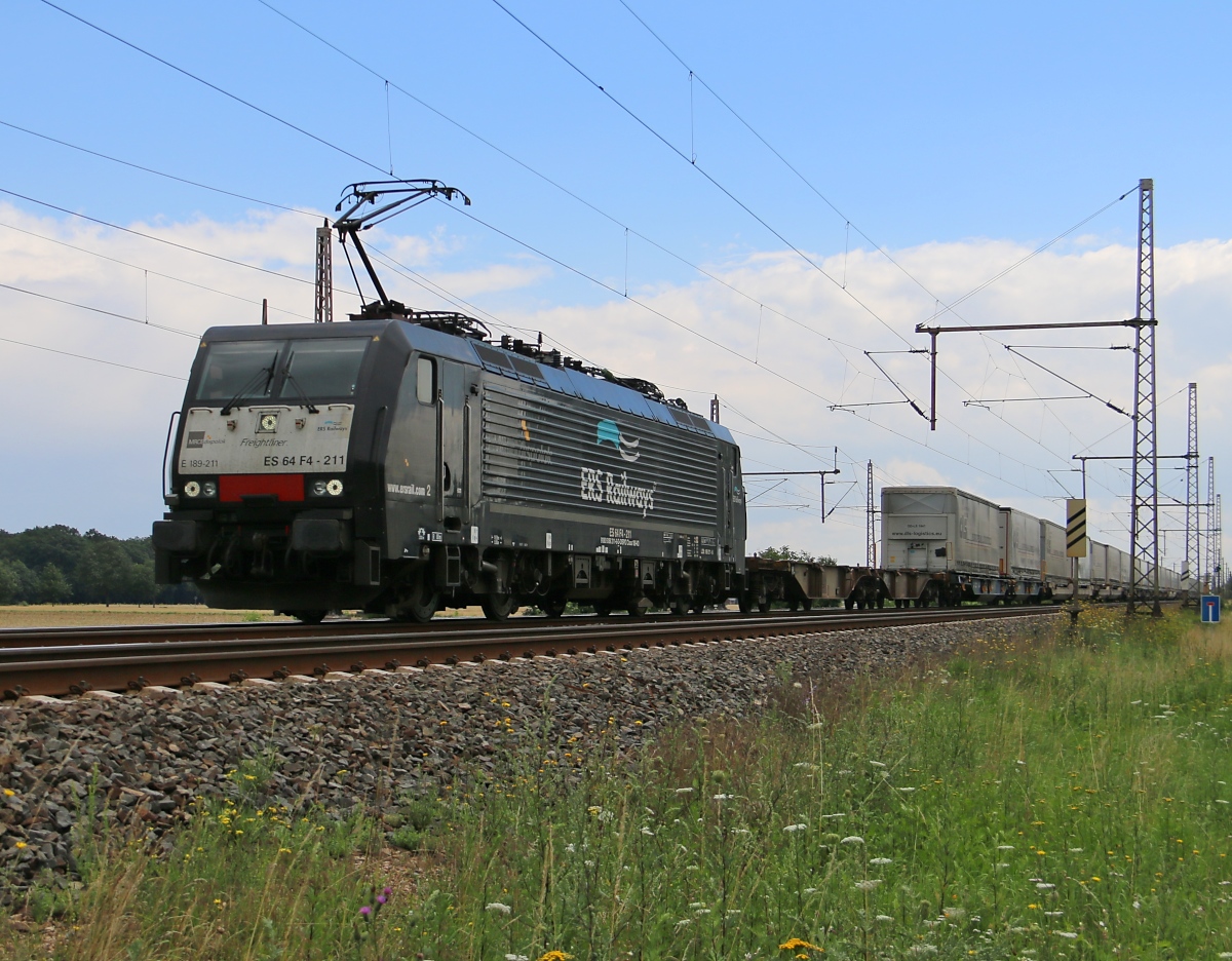 189 211 (ES 64 F4-211) für ERS Railways mit Containerzug in Fahrtrichtung Wunstorf. Aufgenommen in Dedensen-Gümmer am 29.07.2015.