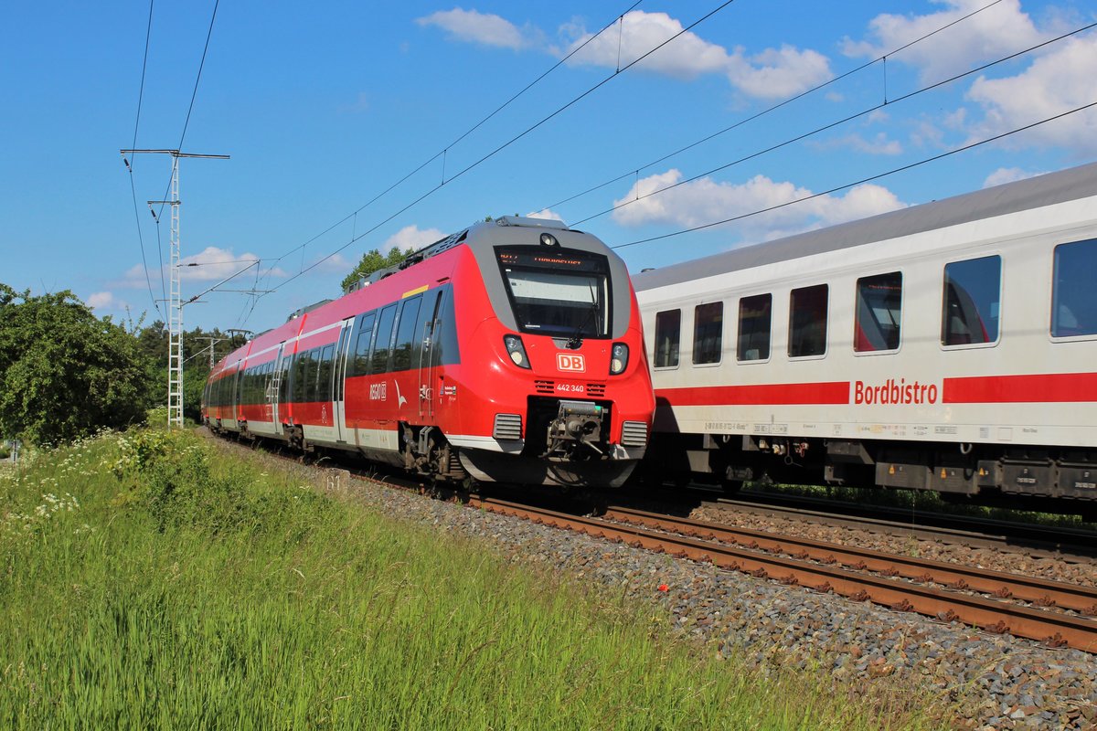 Am 2.6.17 war 442 340 auf dem RB 17 Rostock-Ludwigslust. Hier bei der Einfahrt Bad Kleinen