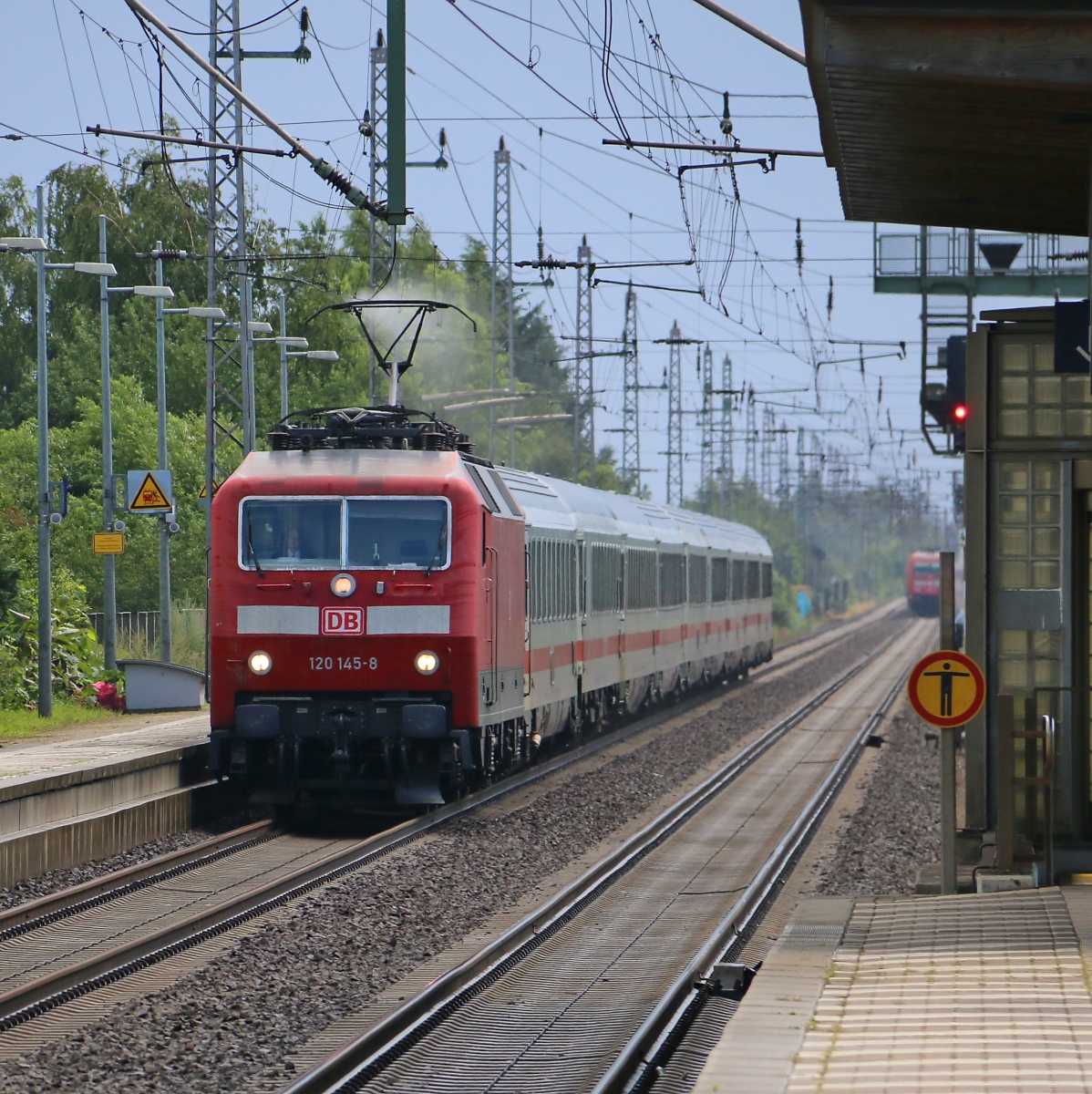 Nach einem ergiebigen Regenguss kam als erster Zug ein IC mit 120 145-8 davor aus Richtung Hannover Hbf. durch Dedensen-Gümmer. Aufgenommen am 29.07.2015.