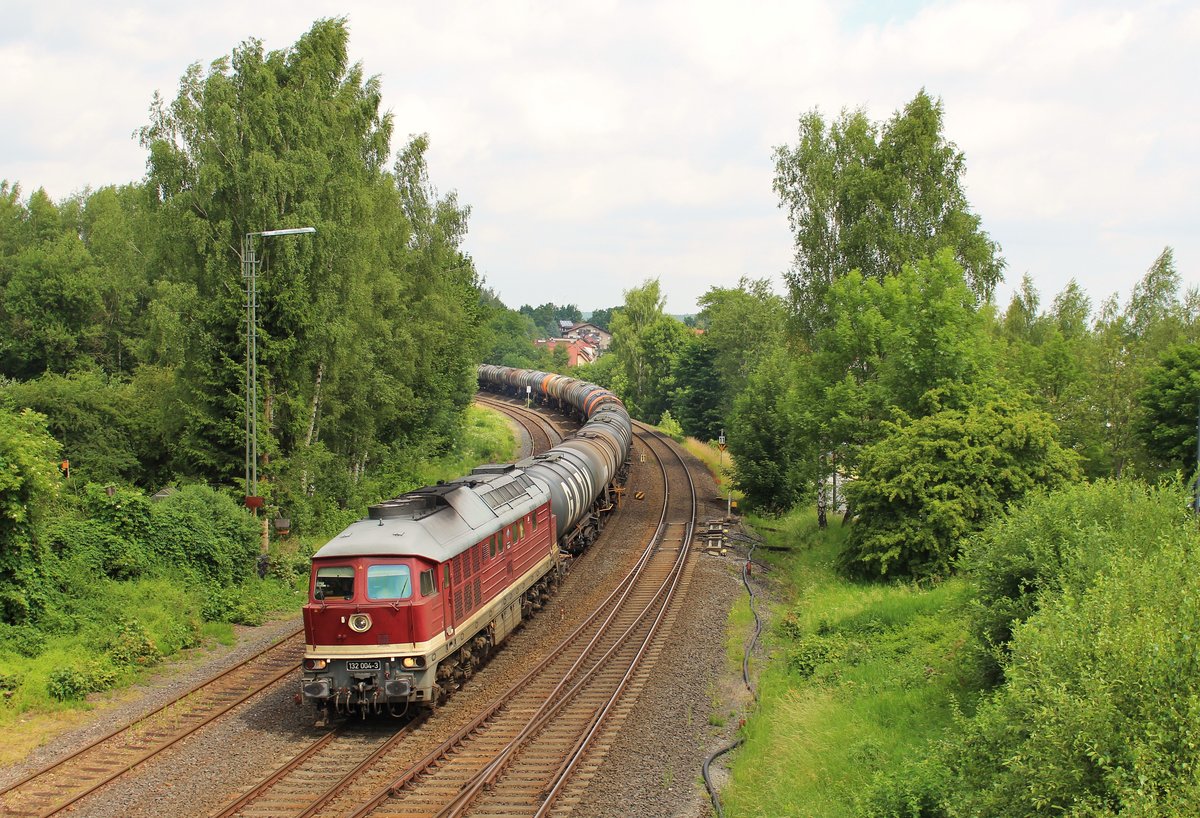 132 004-3 (LEG) zu sehen am 23.06.17 mit einem Kesselzug in Marktredwitz.