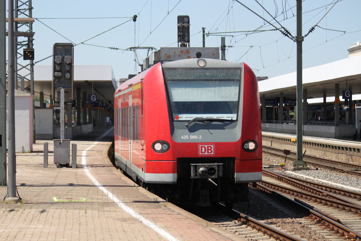 425 231-8 und ein weiterer 425, halten als S3 38363 (Germersheim - Speyer Hbf - Heidelberg Hbf - Karlsruhe Hbf) in Mannheim Hbf.
