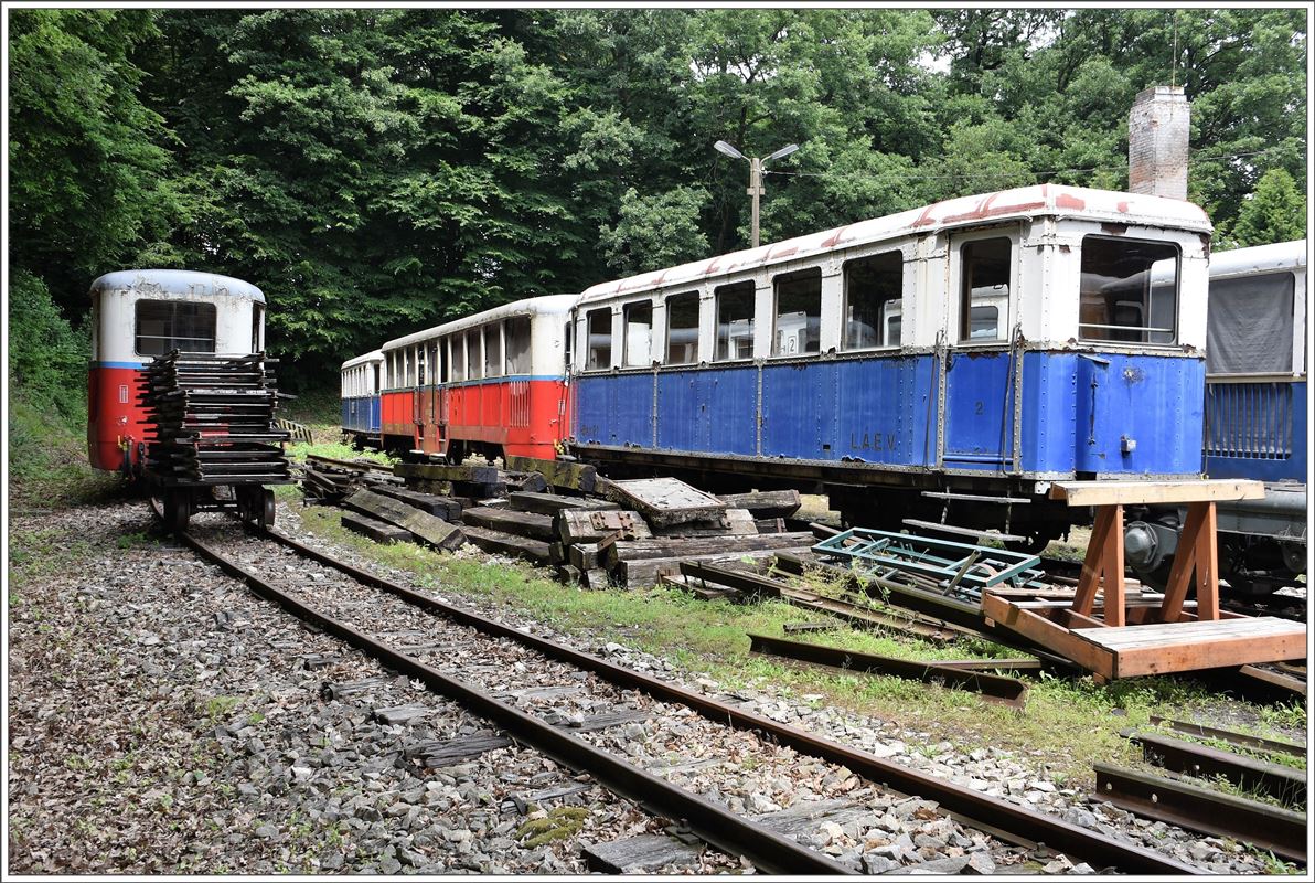Kindereisenbahn Budapest, geführte Depotbesichtigung in Hüvösvölgy. Da ist noch einiges an Arbeit nötig, um diese Wagen wieder herzurichten. (10.06.2017)