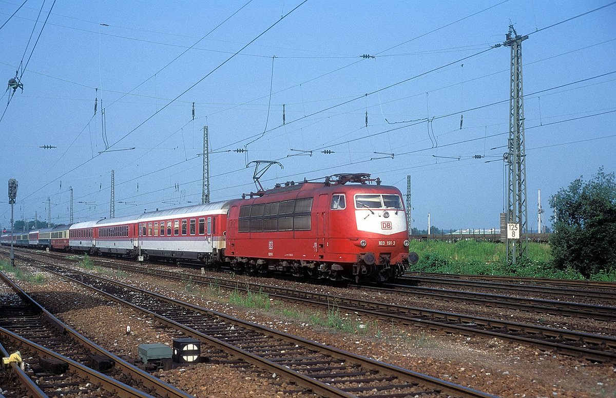 101 009 befindet sich am 14.06.2017 mit dem IC2218 nach Hamburg auf dem Streckenabschnitt zwischen Ludwigshafen Mitte und Ludwigshafen Hauptbahnhof.