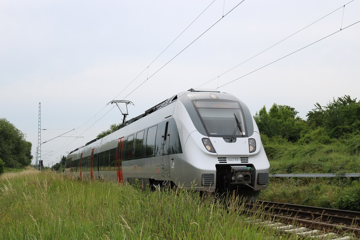 1442 661 (Bombardier Talent 2) von DB Regio Südost als RB 16360 (RB75) von Halle(Saale)Hbf nach Lutherstadt Eisleben in Zscherben auf der Bahnstrecke Halle–Hann. Münden (KBS 590). [27.6.2017 - 11:51 Uhr]