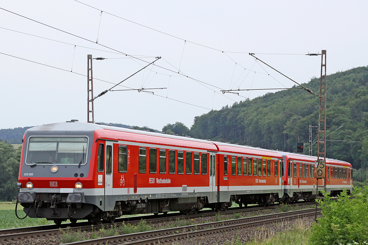 628 der Westfrankenbahn am 27.06.2017 10:13 nördlich von Salzderhelden am BÜ 75,1 in Richtung Göttingen