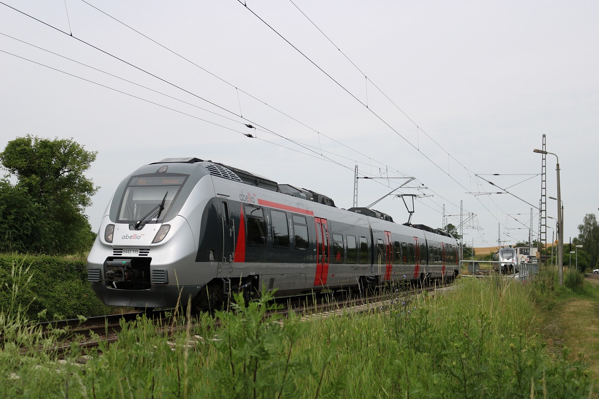 9442 113 (Bombardier Talent 2) von Abellio Rail Mitteldeutschland als RB 74806 (RB59) von Bitterfeld nach Erfurt Hbf in Zscherben auf der Bahnstrecke Halle–Hann. Münden (KBS 590). [27.6.2017 - 12:18 Uhr]