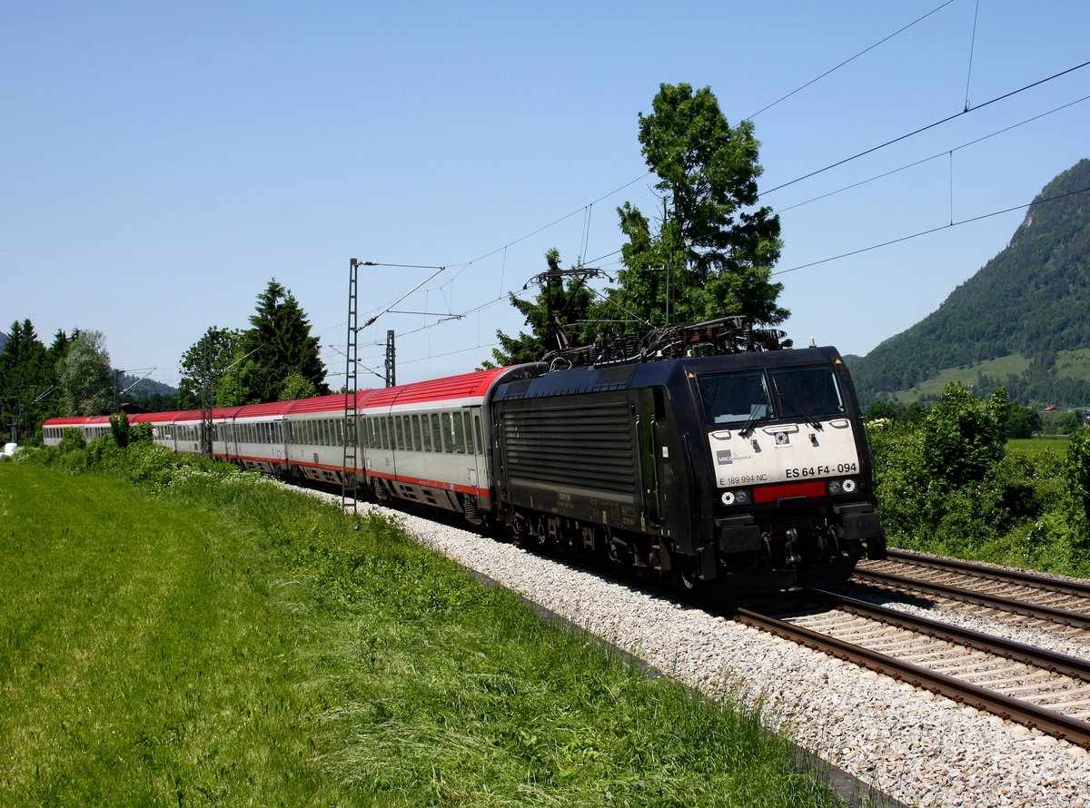 Die ES 64 F4-094 mit einem Brenner EC am 05.06.2010 unterwegs bei Niederaudorf.