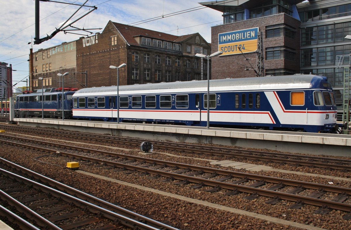 Steuerwagen der Bauart Karlsruhe D-TRAIN 50 80 82-34 241-3 steht am 28.5.2017 zusammen mit 110 469-4 im Berliner Ostbahnhof abgestellt.