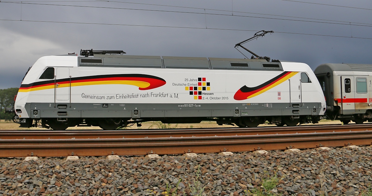 101 027-1 mit IC aus Richtung Hannover Hbf kommend. Aufgenommen in Dedensen-Gümmer am 29.07.2015