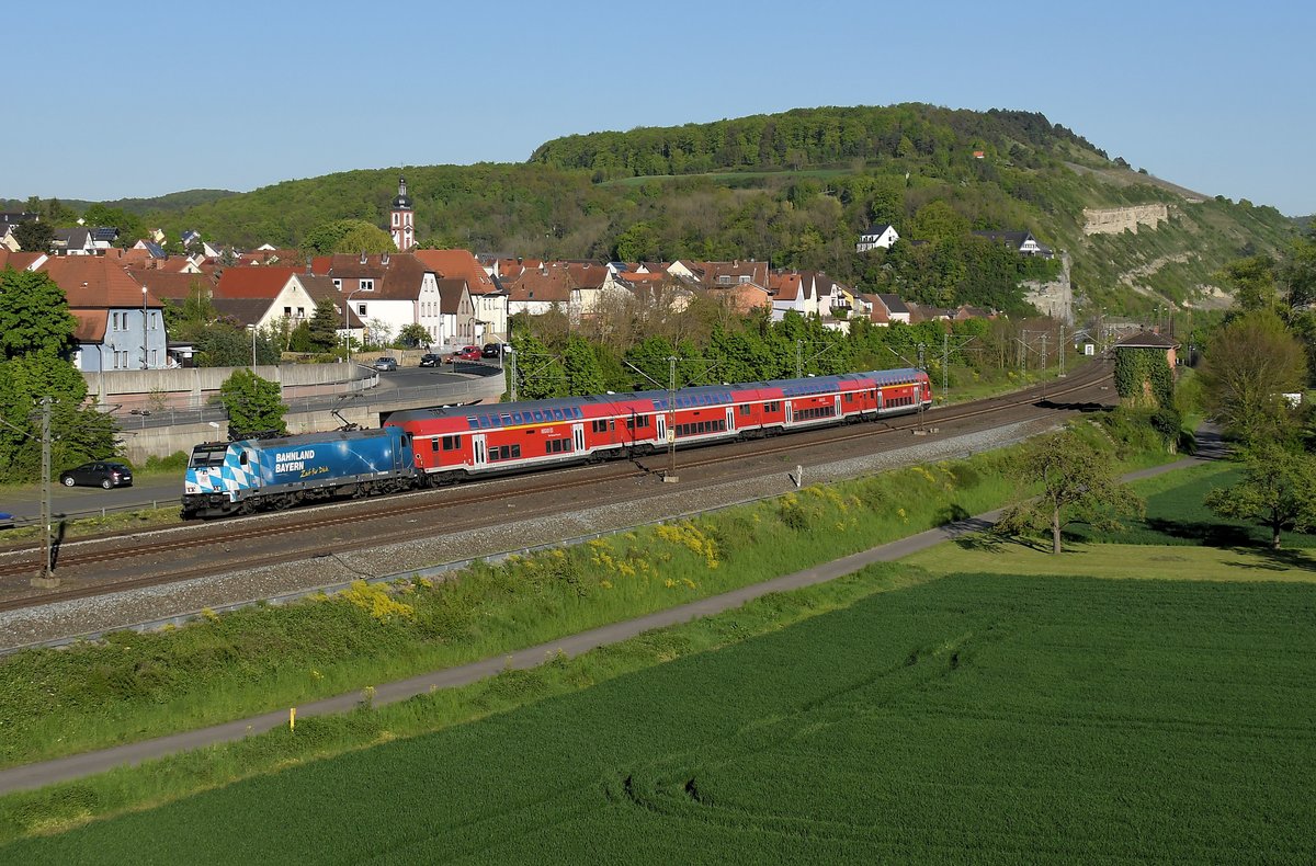 146 246 `Bahnland Bayern´ am 10.05.17 auf dem Weg nach Frankfurt am Main kurz vor dem Halt Retzbach-Zellingen