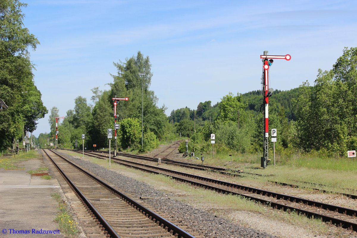 Aufgenommen in Bad Waldsee am 25. Mai 2017 an der KBS 753. An dieser Strecke gibt es noch mechanische Formsignale, die ihren Alltagsdienst tun. Blickrichtung Aulendorf an der Südbahn.