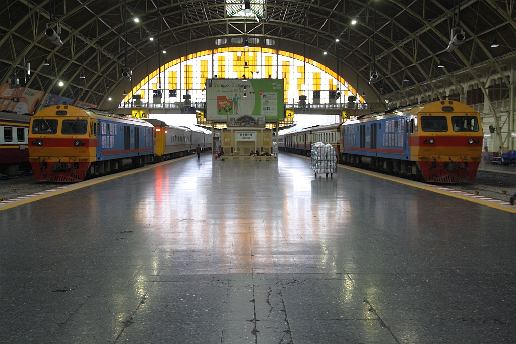 HID 4518 und HID 4504 (Co'Co', de, Hitachi, Bauj. 1993) am 30.Mai 2017 in der Halle des Bf. Hua Lamphong.