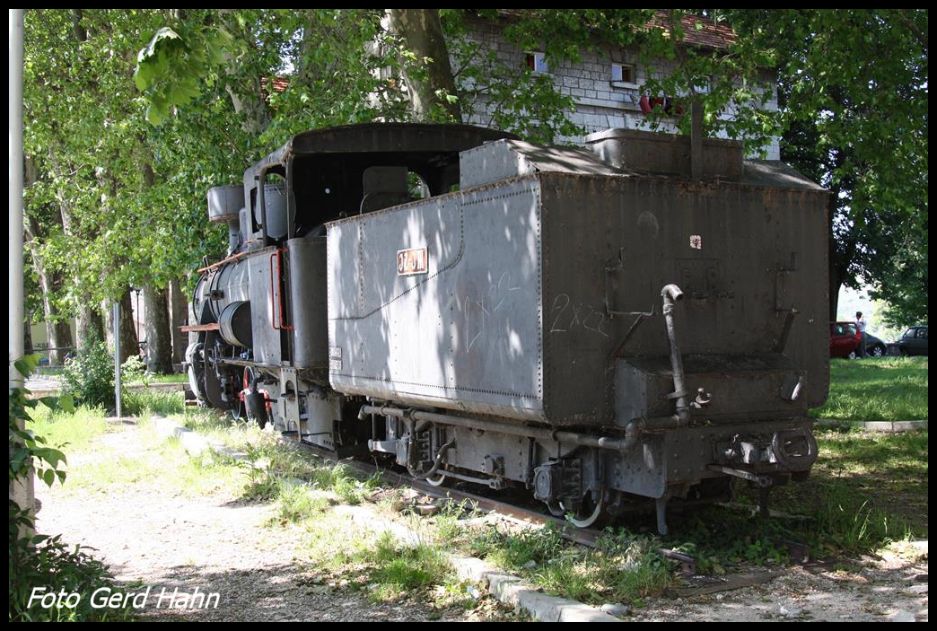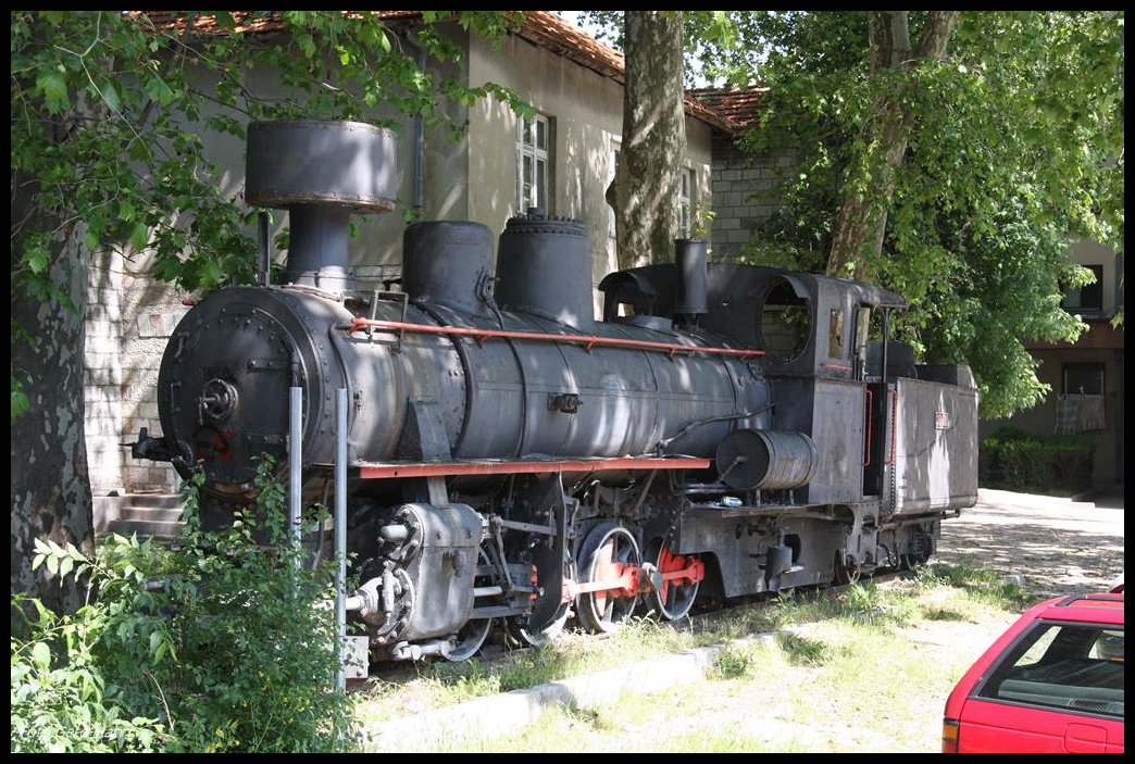 Verdeckt von hochgewachsenen Bäumen und unscheinbar abseits der Hauptstraße steht an einer Wohnsiedlung in Trebinje in Bosnien Herzegowina die ex JZ 63-86 Schmalspurlok. Lok und Umfeld waren am 16.5.2017, als ich sie fotografierte, sehr ungepflegt.