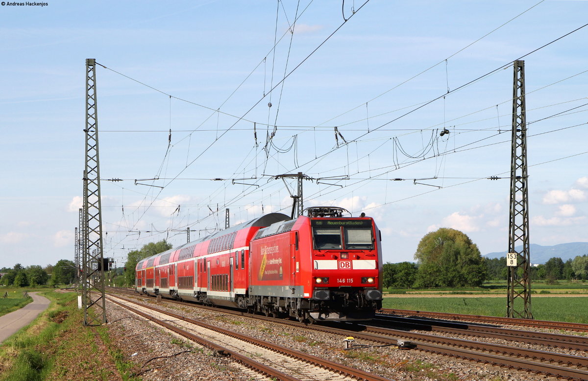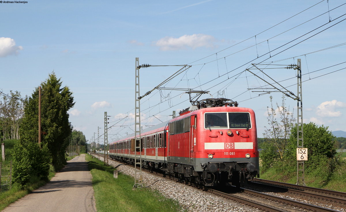 13.05.2017 Streckenabschnitt Uhingen 111 019-6, Sonderzug mit Fußballfans nach Freiburg ...