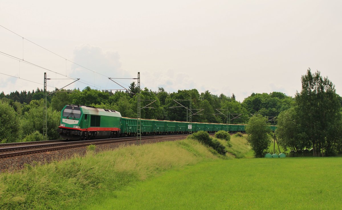 Während am 07.05.17 44 1486 Führerstandsmitfahrten anbot setzte sich 215 004 der Ascherslebener Verkehrsgesellschaft vor den Fotogüterzug.