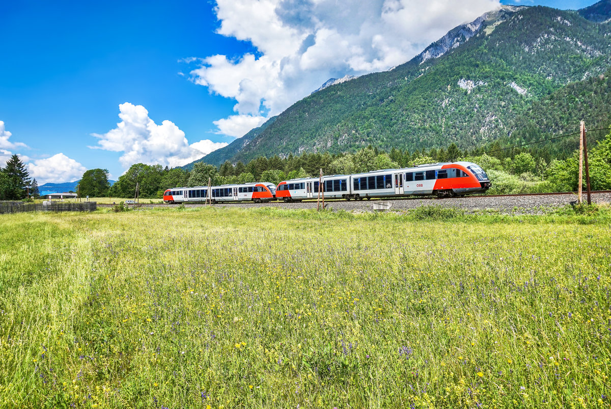 Frisch aus der HW Linz entlassen wurde wohl die 1116.176 - glänzend wie ein  Speckschwartl  und mit neuem Stromabnehmer versehen. Am 01. April 2017 konnte ich diese Maschine vor einem gemischten Güterzug in Wernstein aufnehmen.
