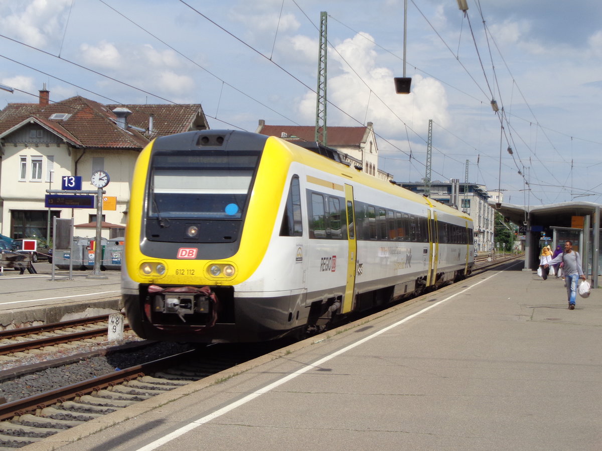 612 123 bei der Einfahrt Kempten (Allgäu) Hbf am 2. Juni 2017.