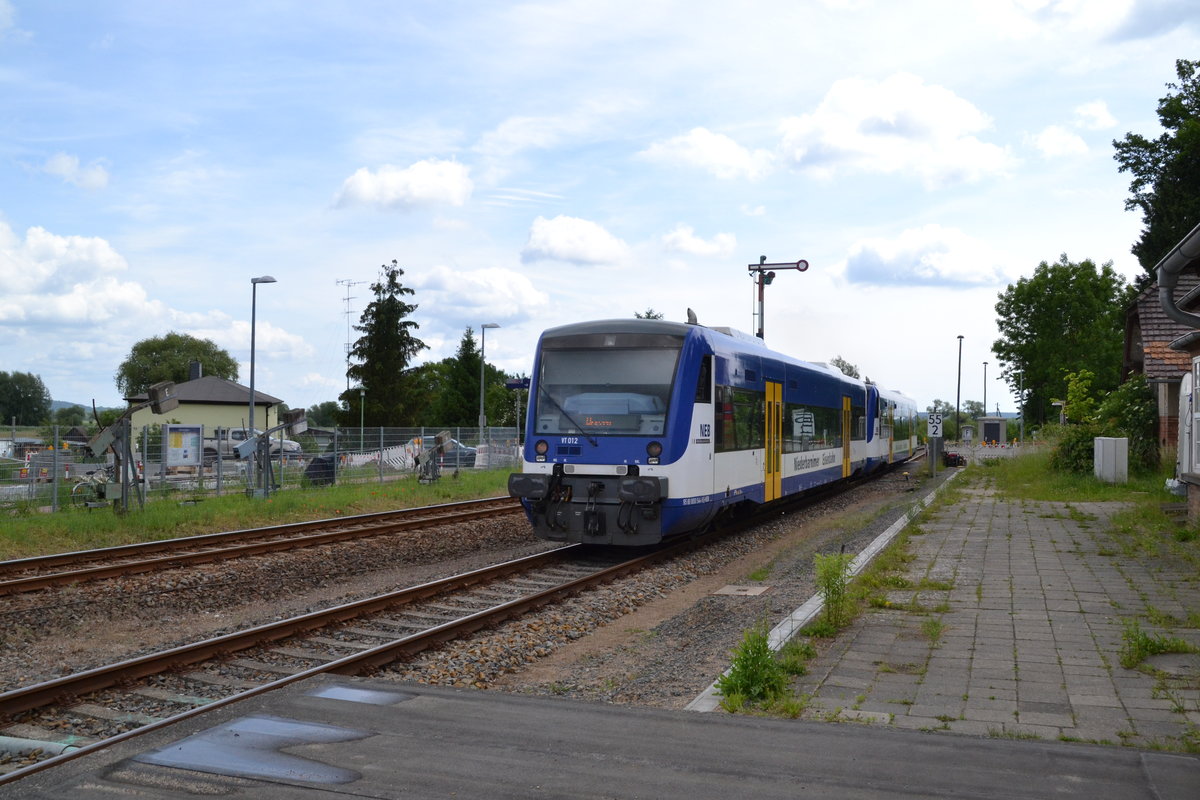 612 618 beim Passieren des ehemaligen Stellwerks Memmingen am 1. Juni 2017.
