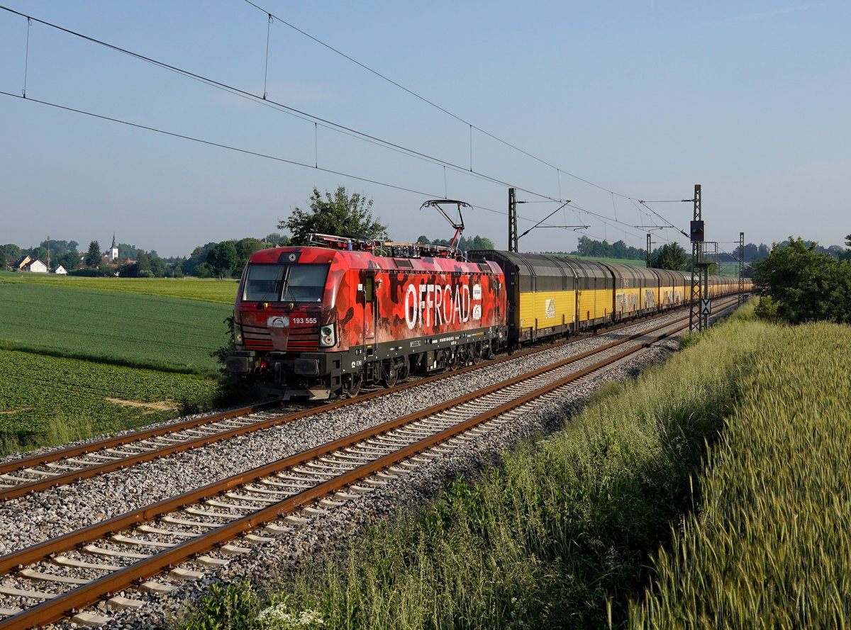 Am 05.06.2017 kam dann die 193 218 mit dem leeren Hackschnitzelzug für Kehl aus Richtung Borstel nach Stendal.