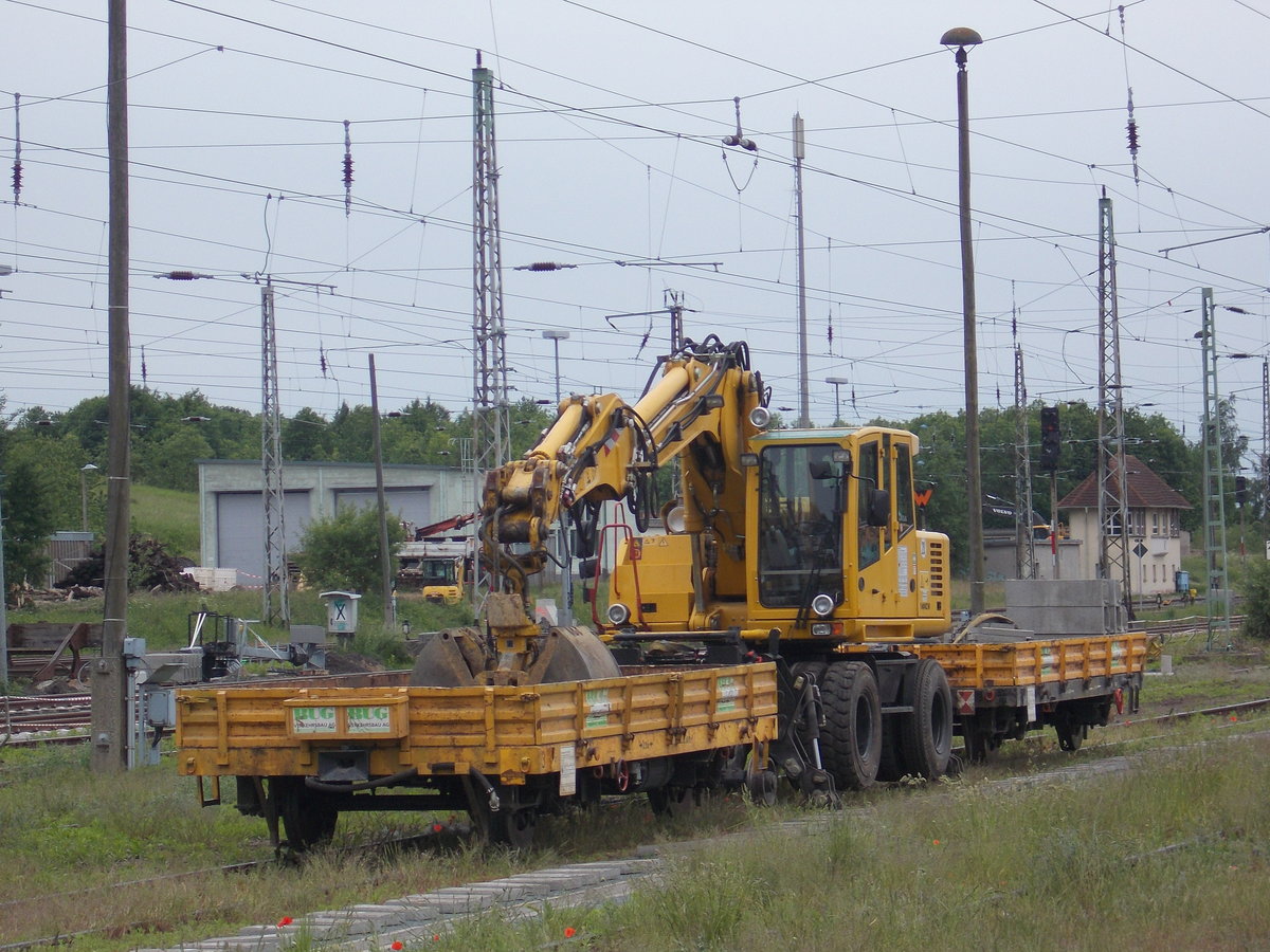 Drei arbeitsfreie Tage für diesen Zweiwegebagger der,am 03.Juni 2017,in Bergen/Rügen abgestellt wurde.