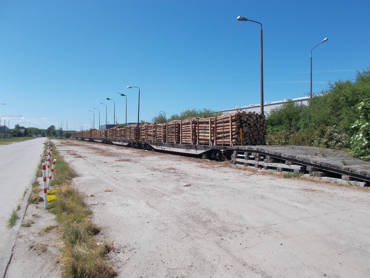 Mit Holz beladene Snps Wagen,am 02.Juni 2017,in Greifswald Ladebow.