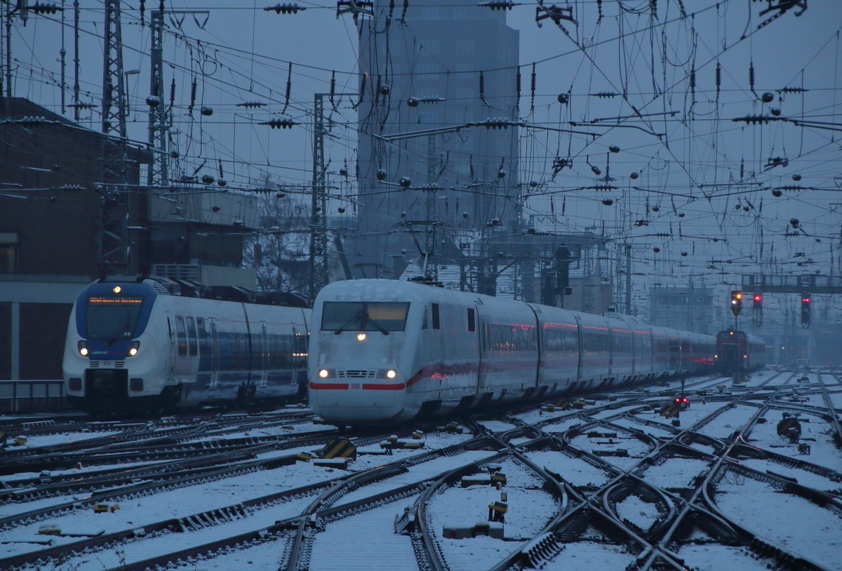 101 053-7 hat am 14.5.2017 mit dem IC143 von Amsterdam Centraal nach Berlin Ostbahnhof den Berliner Hauptbahnhof erreicht. Auf dem Nachbargleis fahren 403 018-5  Münster(Westf)  als ICE856 von Berlin Ostbahnhof nach Köln Hauptbahnhof und 403 016-9  Siegburg  als ICE846 von Berlin Ostbahnhof nach Köln Hauptbahnhof ein.