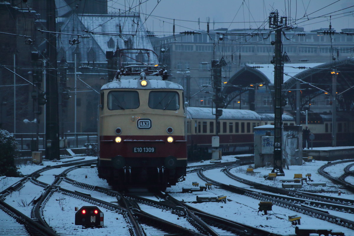 Ausfahrt am 13.10.2015 von 101 092-5 "Bernina Express abenteuerliCH" mit dem EC 9 (Hamburg Altona - Zürich HB) aus dem Badischen Bahnhof von Basel in Richtung Basel SBB, um dort ihren Zug an eine Re 4/4 II abzugeben.