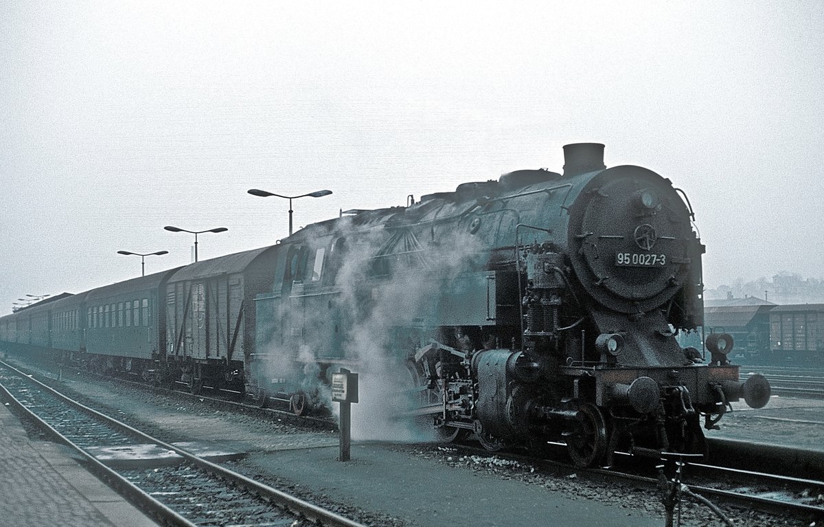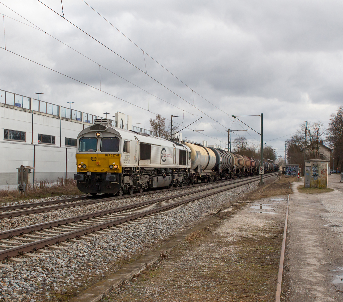 077 027-6 weilt schon eine etwas längere Zeit im Oberbayrischen und konnte am 10.03.17 in Poing mit einem Kesselzug in Richtung München im Bild festgehalten werden.