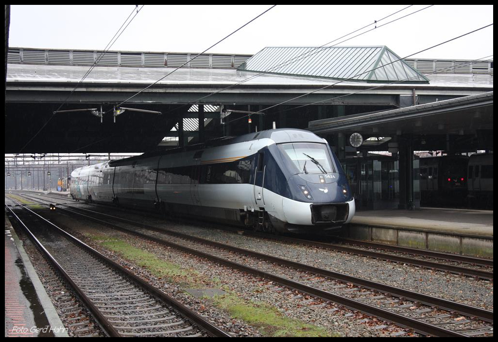 DSB Triebwagen 5624 fährt hier am 5.3.2017 um 12.14 Uhr in Fredericia nach Odense ab.