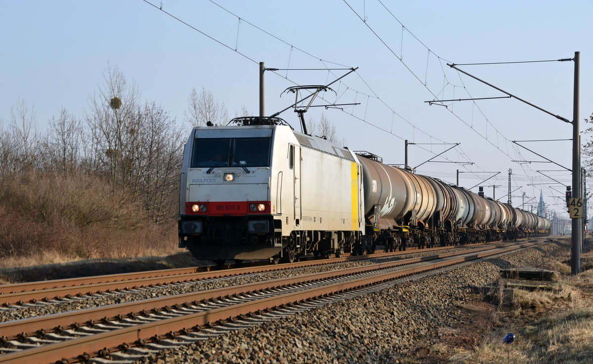 Am 12.03.2017 kam die 145 095 mit einem Schotterzug aus Richtung Hannover und fuhr weiter in Richtung Magdeburg.