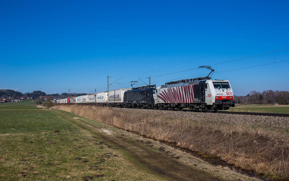 Doppeltraktion, mit den Loks 186 903-1 und 186 904-9, durchfahren den Bahnhof Rothrist. Die Aufnahme stammt vom 11.03.2017.
