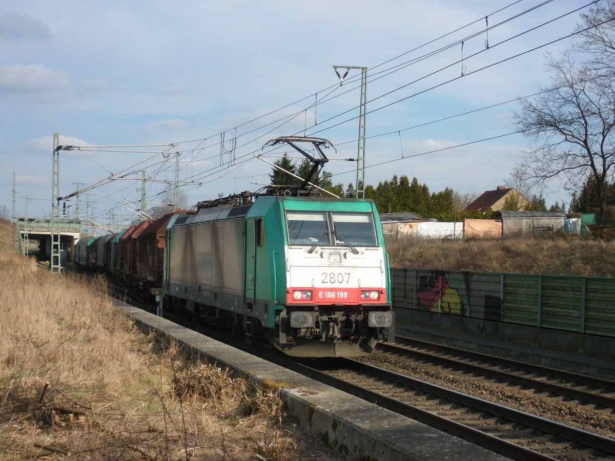 Am 12.03.2017 kam die E186 199 mit einem Stahlzug aus Richtung Stendal und fuhr weiter in Richtung Hannover.