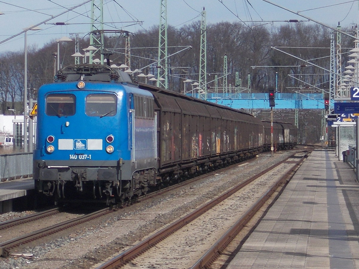 185 363-9 passiert mit einen gemischten Güterzug am 14.03.2017 Reilos.