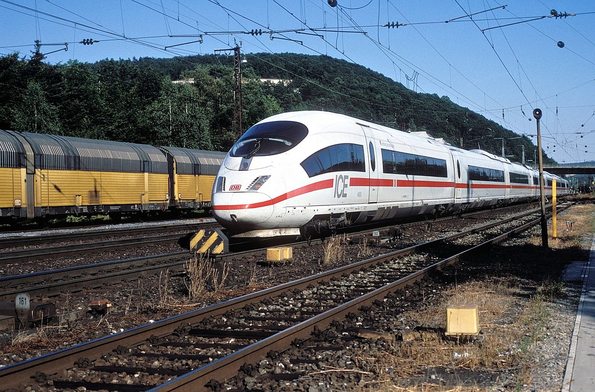 Im Hintergrund fährt der ICE Valero D 714 in Richtung Mannheim durch.
