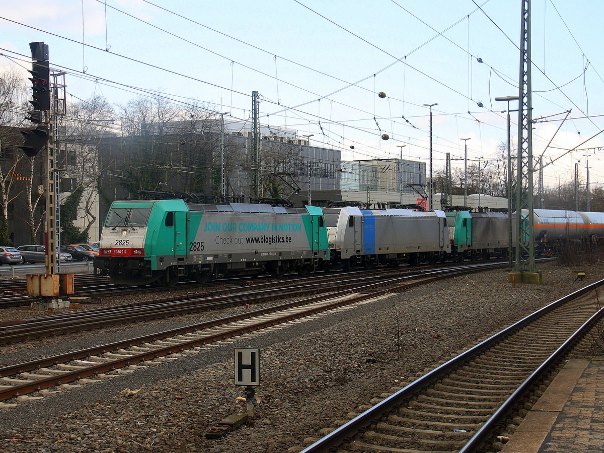 2825 und 186 293-7 und 2816 kommen aus Richtung Montzen/Belgien mit einem Güterzug aus Antwerpen-Noord(B) nach Köln-Gremberg und fährt in Aachen-West ein.