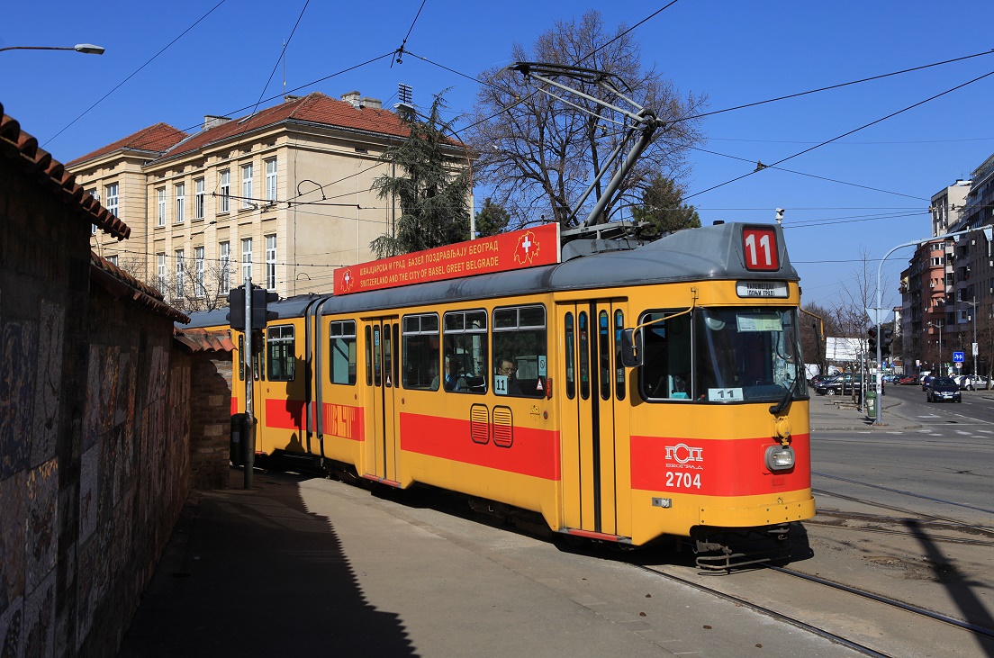 Belgrad Tw 2704 am Zoo kurz nach Verlassen der Schleife der Linien 5, 10 und 11, 28.02.2017.