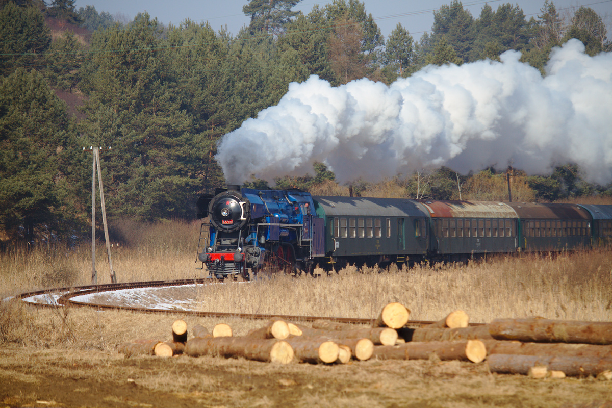 Fotosonderzug mit der 477.013 auf dem Eisenbahnviadukt von Telgárt, das extra für die Fotografen bestrahlt wurde. Eindrucksvoll war der Funkregen unterhalb der Rauchfahne.(16.02.2017)