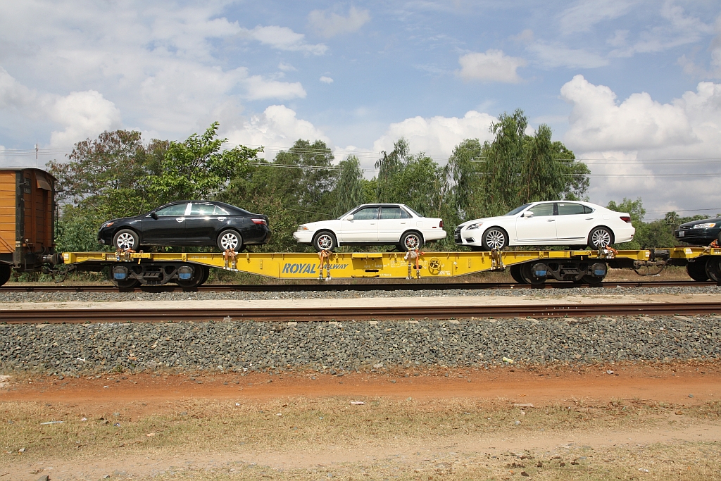 Autoreisezugwagen MMv 16.247 eingereiht im Samstagszug von Phnom Penh nach Sihanoukville am 18.März 2017 in der Takeo Station.