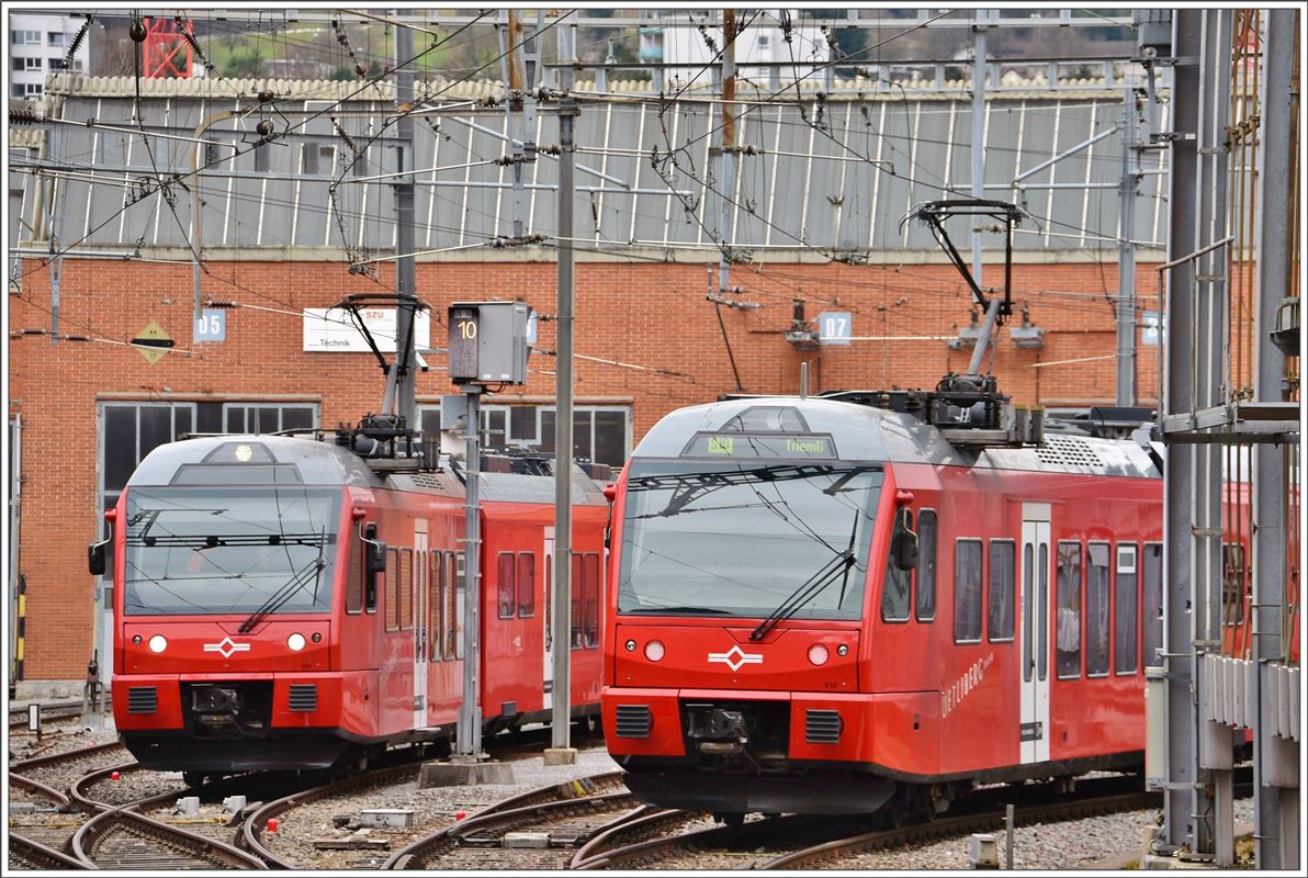 Die neuen Stadlerzüge beherrschen das Bild der Uetlibergbahn, hier beim Depot Giesshübel. (01.03.2017)