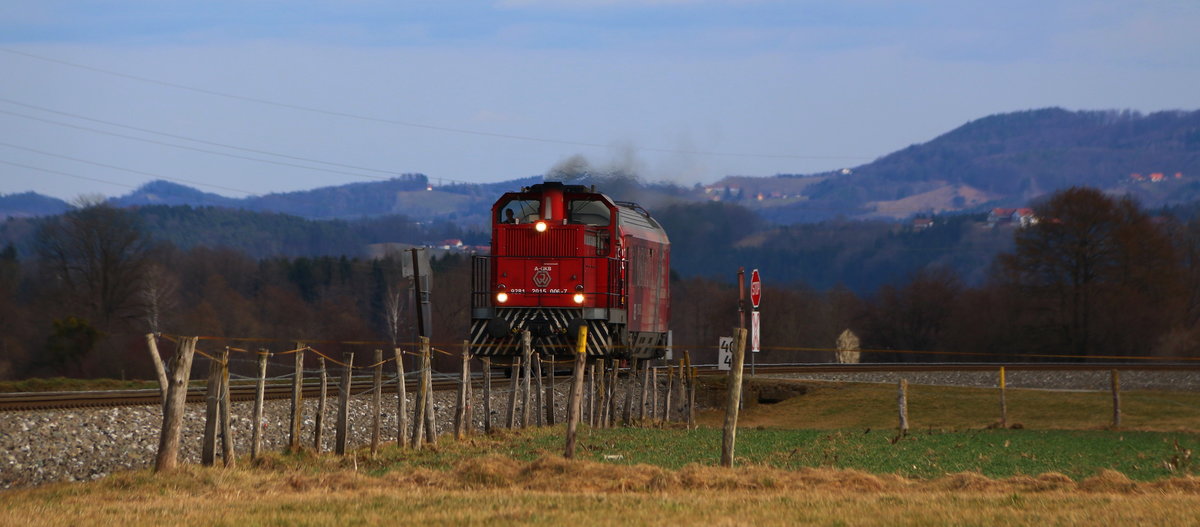 Die letzt gebaute DH 1500.6 einst die schwerste der 6 Schwestern zieht an diesem 7.03.2017 den "Railchecker" in den Bahnhof St. Martin im Sulmtal Bergla.